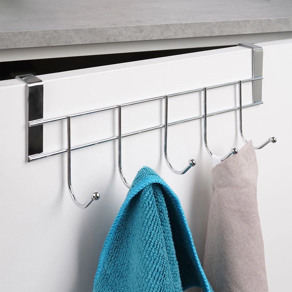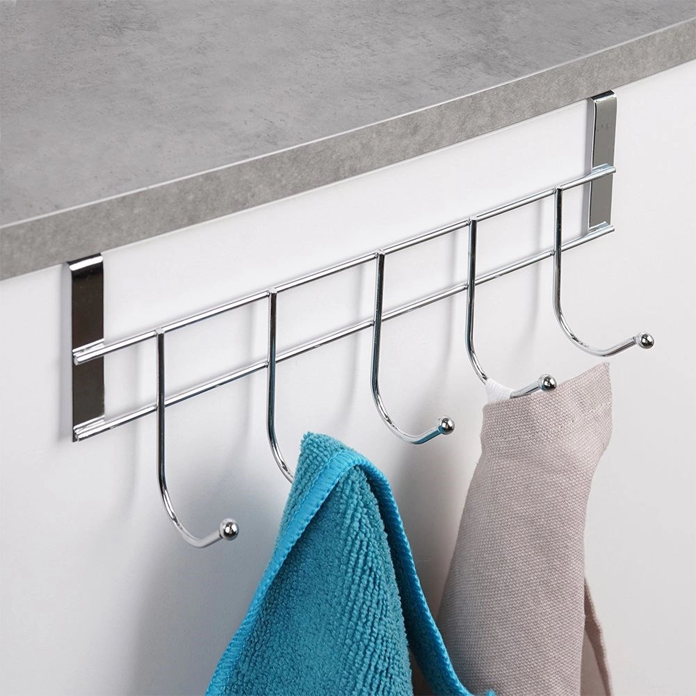 Dankzij de vijf robuuste haken hang je moeiteloos handdoeken, kleding, ovenwanten, theedoeken of cosmetische accessoires op. De installatie is zonder gereedschap en zonder boren – ideaal voor huurwoningen en als snelle oplossing voor extra opbergruimte.