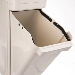 De interne zakhouders houden de vuilniszak stevig op zijn plek zodat hij niet naar binnen zakt. De duurzame uitvoering van hoogwaardig kunststof in beige zorgt voor eenvoudig onderhoud en een lange levensduur. Ideaal voor het scheiden van plastic, papier of restafval in huis en op de werkvloer.