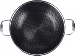 Tijdloze wok van roestvrij staal uit de COOKCELL HYBRID-serie combineert de duurzaamheid van staal met moderne anti-aanbaktechnologie met een hexagonale structuur. Dankzij de uitstekende warmteoverdracht bereidt u smakelijke en sappige gerechten met een minimum aan olie, terwijl de ingrediënten hun natuurlijke smaak en voedingsstoffen behouden.