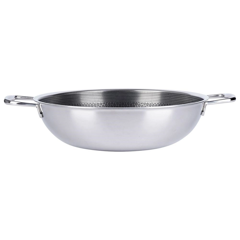 De constructie van de wok brengt warmte snel en gelijkmatig over het gehele oppervlak over, zodat u knapperig roerbakken en een sappige kern bereikt met een lager energieverbruik.