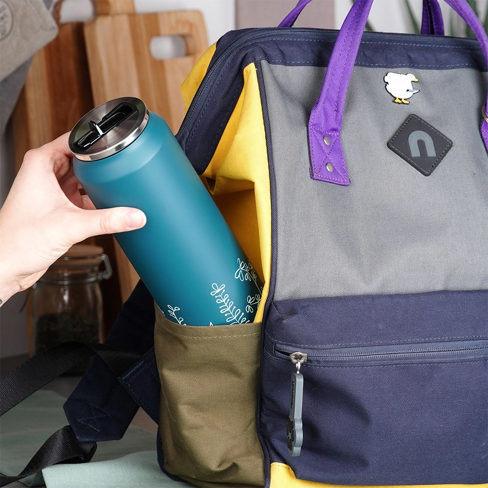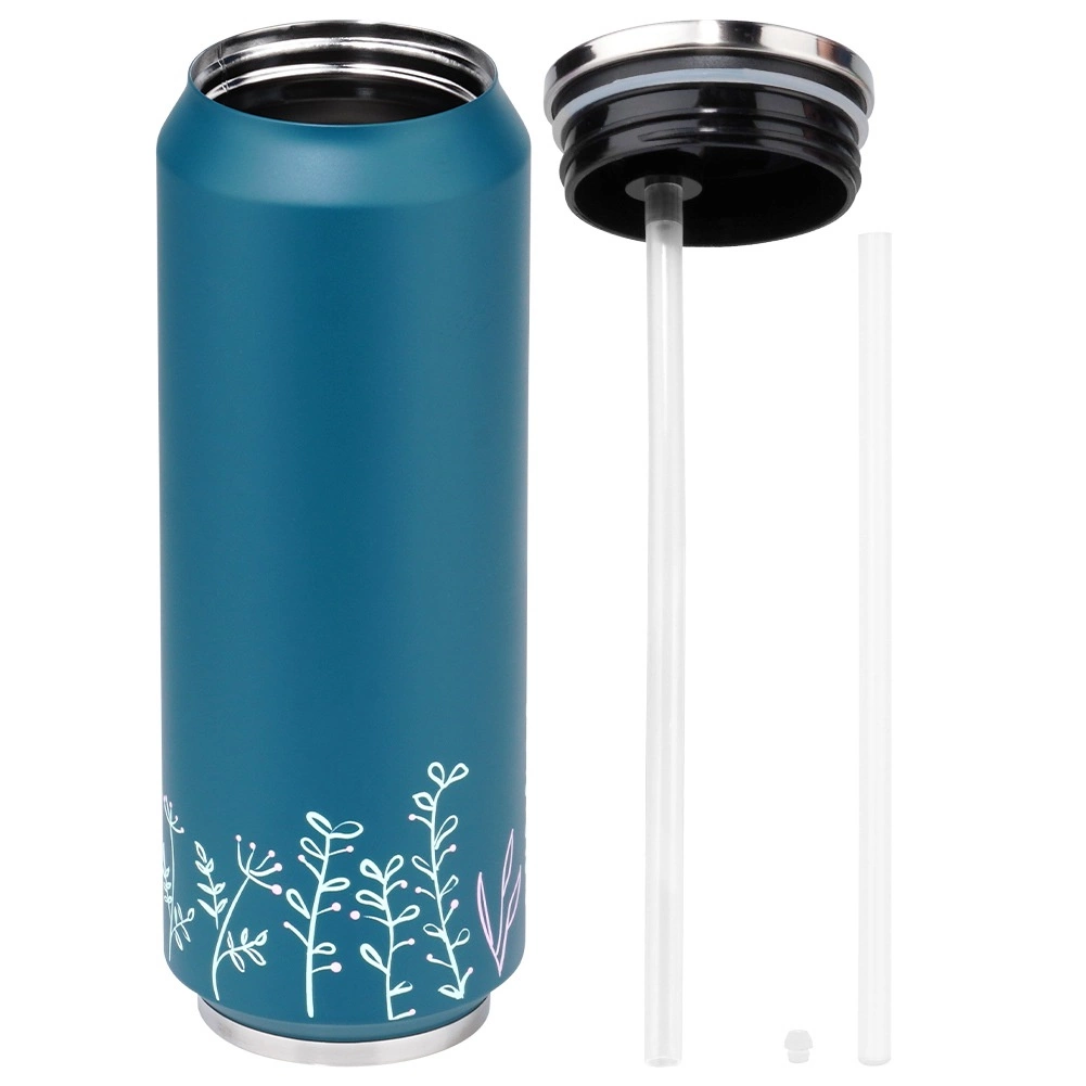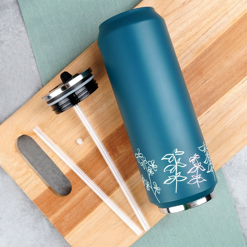 Het ergonomische deksel met opklapbaar tuitje en geïntegreerd rietje zorgt voor comfortabel drinken zonder de beker te hoeven kantelen – ideaal voor onderweg, op het werk en tijdens uitstapjes. Het stijlvolle plantaardige decor op een blauwe achtergrond benadrukt de elegante look en maakt van de beker een geweldig cadeau-idee.