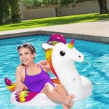 Breng een vleugje sprookje in de zomer met de opblaasbare zwemband in de vorm van een eenhoorn van Bestway. Kleurrijk design, afmetingen 119 × 91 cm, duurzaam getest vinyl en een draagvermogen tot 90 kg zorgen voor comfortabel relaxen aan het zwembad, op het meer en aan zee. Inclusief reparatiepatch voor snelle fixes.