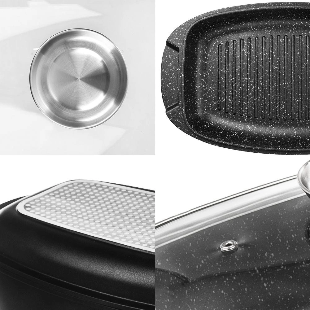 De dubbele granietlaag zorgt voor gezondere bereiding met minimale vettoevoeging, makkelijke loslating van gerechten en eenvoudig reinigen.