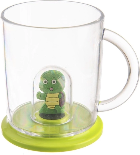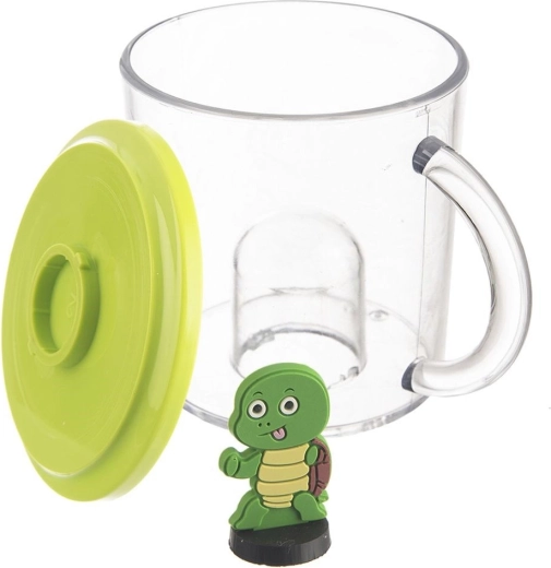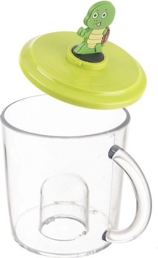 Praktische kinderbeker met afneembaar schildpadfiguurtje op het deksel, leuk voor elke kleine dierenliefhebber. Het deksel beschermt de drank tegen vuil en insecten en kan ook als onderzetter worden gebruikt. Het figuurtje is ook geschikt om mee te spelen en creëert op het deksel het effect van een “schildpadje in de drank”. De beker is geschikt voor thee, water, sap en cacao.
