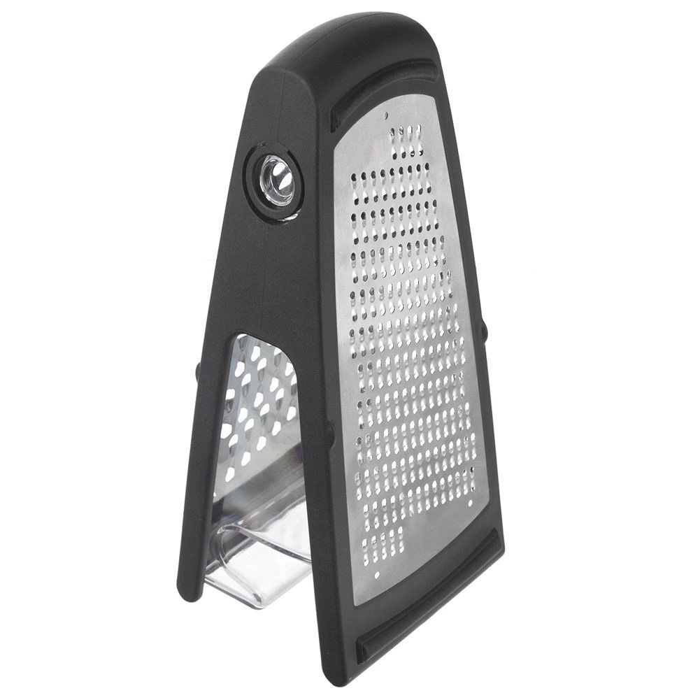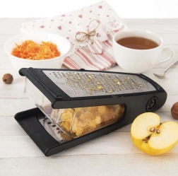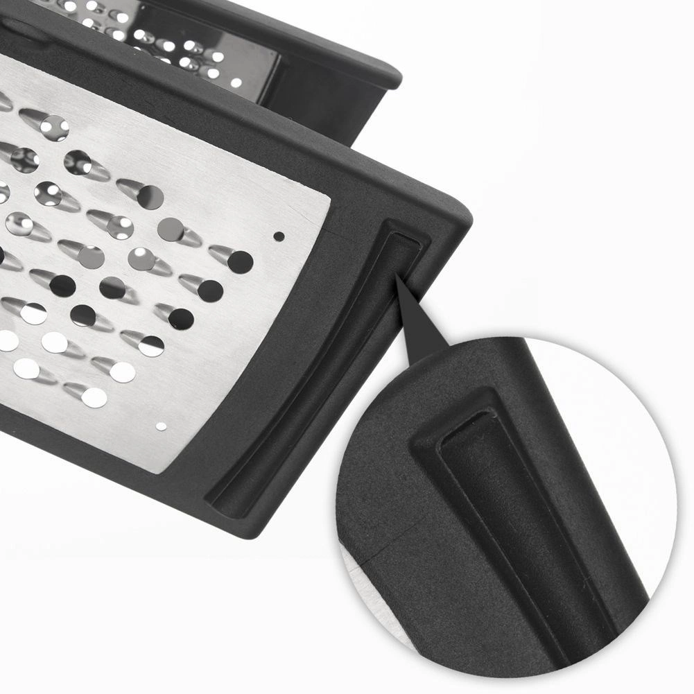 Dankzij duurzaam roestvrij staal en hoogwaardige kunststof is de rasp robuust en toch licht in gebruik. Het bakje vangt de geraspte ingrediënten veilig op en maakt het eenvoudig om ze over te brengen naar een kom of direct in het gerecht. De rasp is makkelijk te reinigen in de vaatwasser, wat tijd en moeite bespaart.
