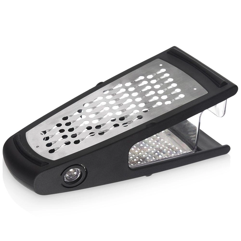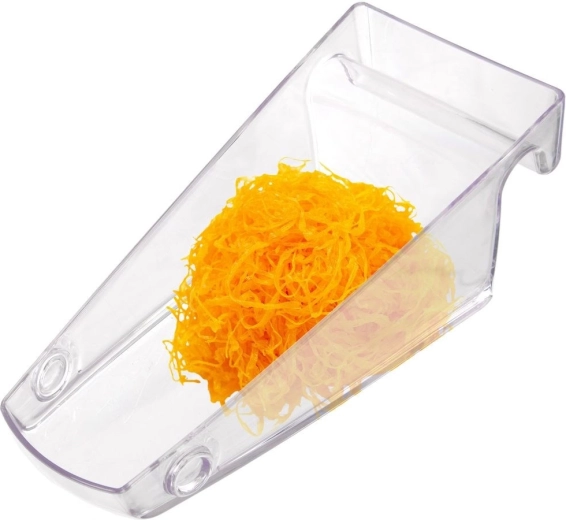 De transparante, afneembare container vangt alles op wat je raspt en maakt eenvoudig overschenken mogelijk zonder rommel op het aanrecht.