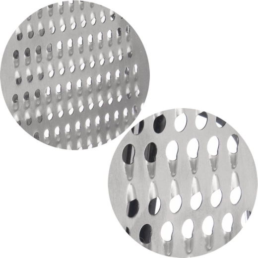 De fijne 2 mm- en de grove 6 mm-zijde verwerken groenten, fruit, kaas en chocolade – van fijne snippers tot grotere stukjes.