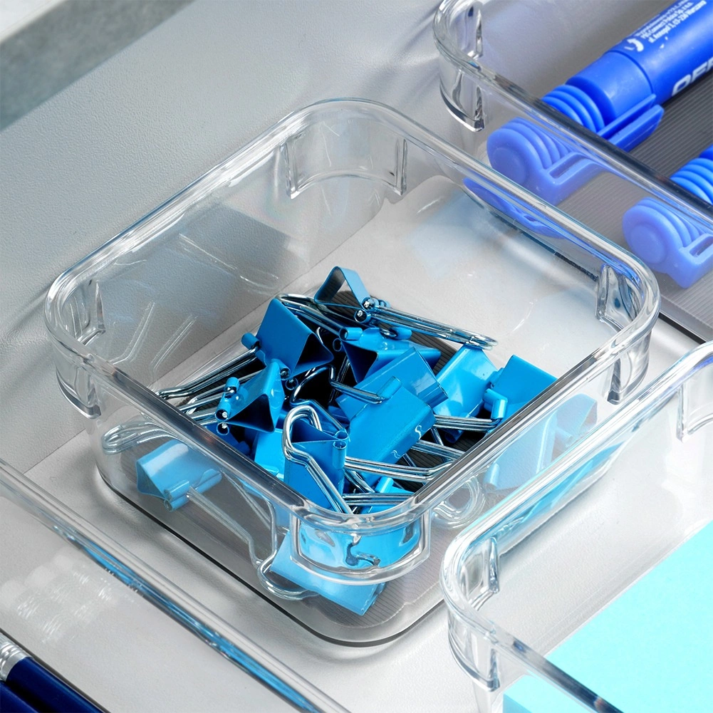 De heldere wanden laten de inhoud in één oogopslag zien. Het duurzame ontwerp is bestand tegen dagelijks gebruik in huis en op kantoor.