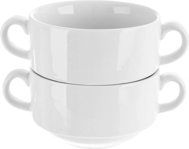 De praktische en stijlvolle bouillonkom MONA zal liefhebbers van huisgemaakte soepen en modern tafelen bekoren. De gladde, witte glazuur laat geserveerde gerechten schitteren en dankzij de twee zijoren draag je de kom comfortabel, zelfs met hete inhoud. Het porselein is duurzaam en gaat bij juist gebruik jarenlang mee.