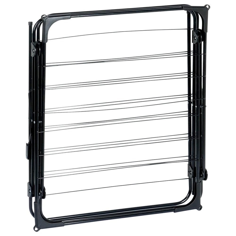 Dankzij het snelle vouwmechanisme vouw je het eenvoudig op tot 74 × 61 × 7 cm en berg je het op naast een kast of in een smalle nis. Het minimalistische design past in ieder huishouden en maakt het dagelijks drogen een stuk makkelijker.