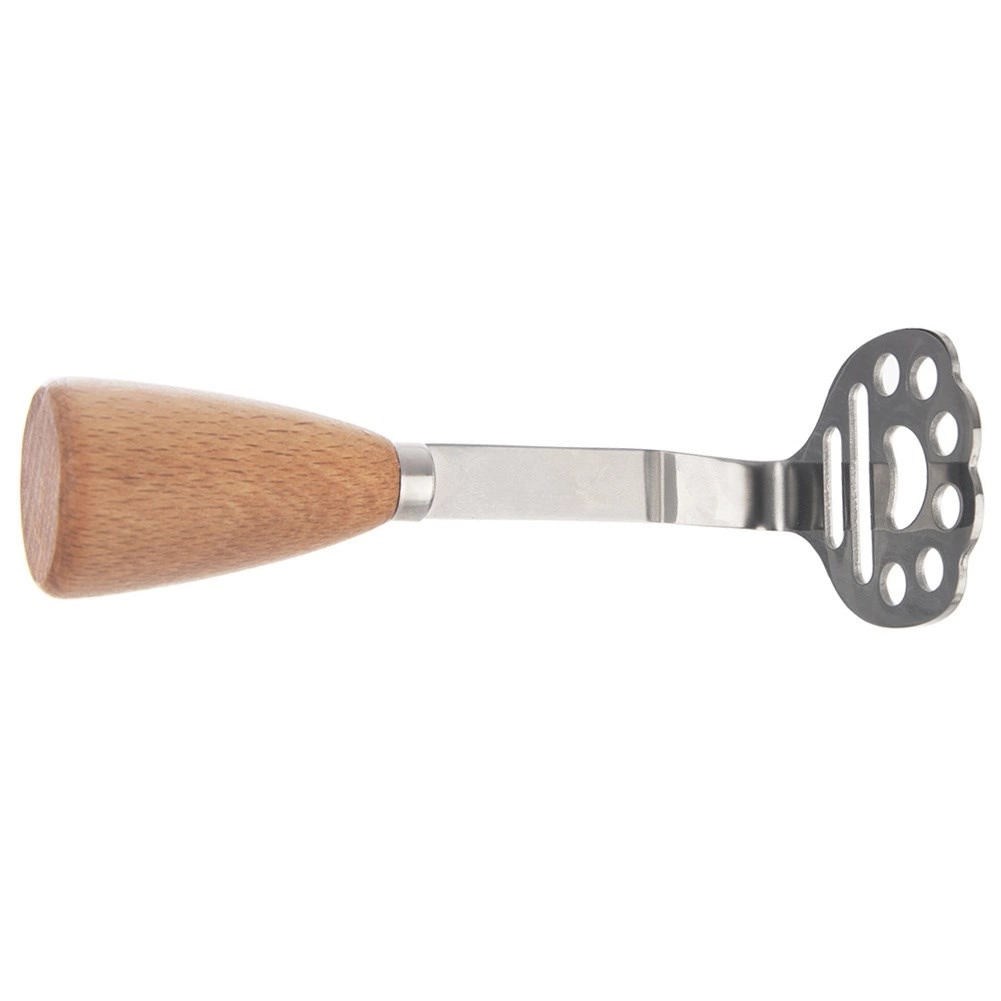 Deze duurzame aardappelpers is onmisbaar voor het bereiden van fijne puree, deeg voor knoedels of groente- en fruitbasis. De kop van roestvrij staal garandeert een lange levensduur en hygiëne, terwijl de beukenhouten greep zorgt voor een comfortabele en zekere grip.