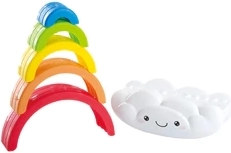 Deze schattige puzzel in de vorm van een regenboog met wolkje is een ideale eerste speelset voor vaardigheidsontwikkeling. De felle kleuren trekken kinderen natuurlijk aan en motiveren hen om vormen en groottes te ontdekken. Tijdens het stapelen van de bogen oefenen ze hun greep, hand-oogcoördinatie en geduld.