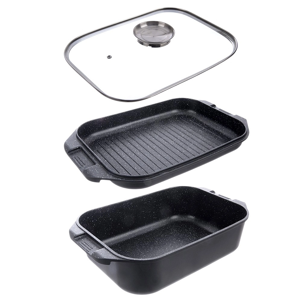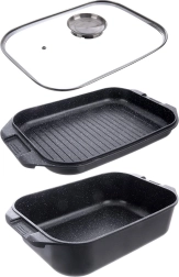 - 3-in-1: braadslede, grillpan en glazen deksel met doseerder