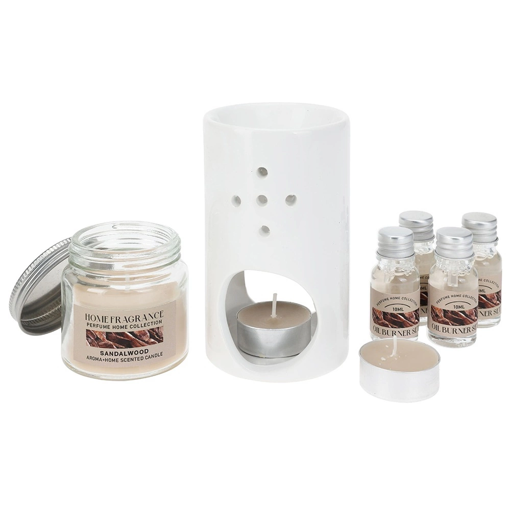 Deze stijlvolle aromatherapieset bevat alles wat je nodig hebt om een ontspannen sfeer te creëren. De keramische aromalamp verwarmt de oliën zachtjes en verspreidt hun rijke geur, die de ruimte parfumeert en helpt te ontspannen na een drukke dag. Alles is verpakt in een elegante doos met venster, zodat de set direct klaar is om cadeau te geven.