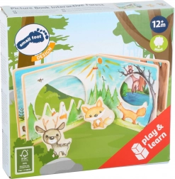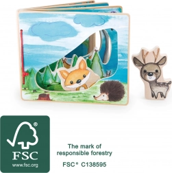 Betreed het diepe bos met het interactieve houten boek dat de verbeelding van kinderen stimuleert. Dankzij de vos- en hertfiguren, die helpen bij het ontdekken van de flora en fauna, wordt elk spel een unieke ervaring.