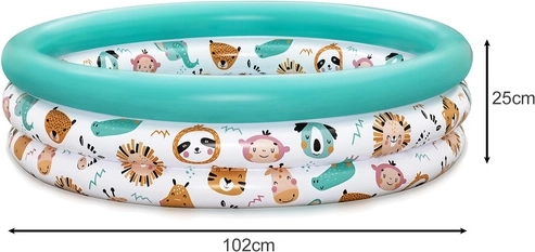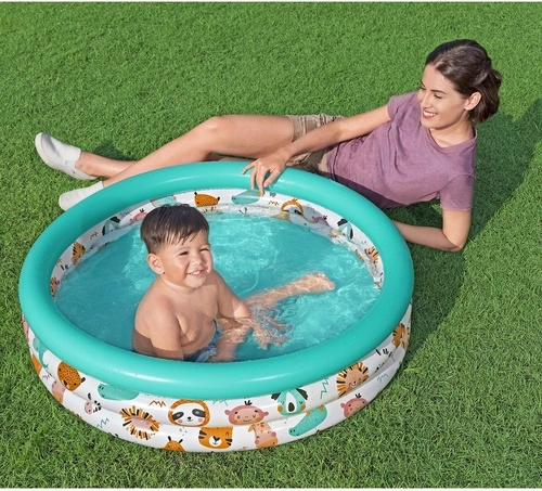 Maak kinderen blij met hun eigen mini-plonsbad. Het ronde BESTWAY bad met een diameter van 102 cm en een hoogte van 25 cm past op elk gazon en terras. De zachte bovenrand en drie afzonderlijke luchtkamers zorgen voor stabiliteit en veiligheid tijdens het spelen, terwijl het hoogwaardige PVC bestand is tegen dagelijks gebruik.