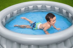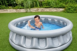 Het opblaasbare zwembad in de vorm van een ruimteschip biedt kinderen volop zomers plezier en aangename verkoeling. Dankzij de zachte opblaasbare bodem en de comfortabele wanden die als leuning dienen, is het verblijf in het water comfortabel, zelfs voor de allerkleinsten. Het zwembad is eenvoudig op te blazen en leeg te laten lopen, waardoor opbergen en vervoeren kinderspel is.