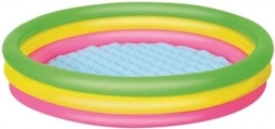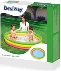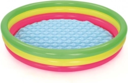 Zorg voor verfrissing en veilig speelplezier voor kinderen met het kleurrijke opblaasbare zwembad van BESTWAY met een diameter van 152 cm. Het heeft een zachte opblaasbare bodem, 3 gekleurde ringen en 3 veiligheidsventielen voor stabiliteit. Duurzaam vinyl, inhoud 211 l, afmetingen 152 × 30 cm, ideaal voor kinderen vanaf 2 jaar, zowel in de tuin als in de kinderkamer.