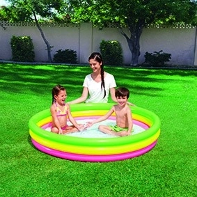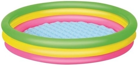 Praktische veiligheidsventielen voorkomen luchtverlies; oppompen en leeg laten lopen is zo gebeurd en na het seizoen vouw je het badje eenvoudig op. Dankzij de afmetingen 152 × 30 cm en een inhoud van 211 l is het ideaal voor jongere kinderen vanaf 2 jaar. Je kunt het vullen met water voor zomerse verfrissing of er ballen in doen en er een droge ballenbak van maken.