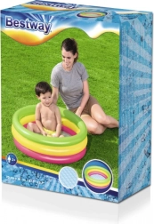 Op hete zomerdagen is er voor de kleintjes geen betere verfrissing dan een opblaasbaar zwembadje! Dit badje is geschikt als peuterpoel. Kleurrijk opblaasbaar zwembad met drie ringen, ideaal voor in de tuin en gegarandeerd veel plezier voor kinderen. De bodem van verzacht PVC voorkomt schaafplekken en werkt antislip.