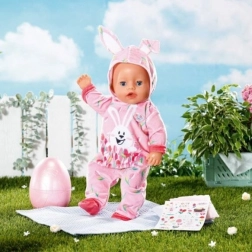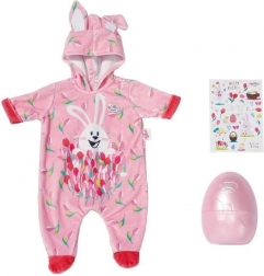 De outfit is gemakkelijk aan te trekken, ook voor kleine handjes, wat het omkleden van de BABY born-pop eenvoudiger maakt. In de verpakking vind je ook stickers voor paasversiering.