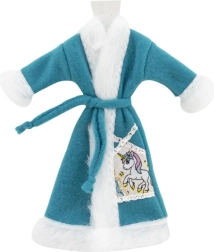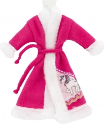 Stijlvolle badjas voor poppen met een fluweelzachte afwerking en een ceintuur om te strikken die verwarmt na het bad en tijdens de avondroutine. Verkrijgbaar in een mix van kleuren en motieven (bijv. eenhoorn), en makkelijk te combineren met andere outfits.