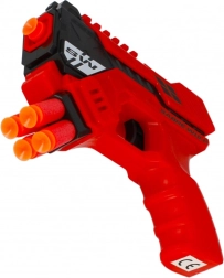 Leuk kinderpistool voor foamdarts voor veilige schietspelletjes thuis. Biedt een compact formaat, zachte, ongevaarlijke darts, een ergonomische greep en keuze uit twee kleuren – rood en groen. In de verpakking zitten 6 foamdarts, ideaal voor kinderen vanaf 3 jaar.
