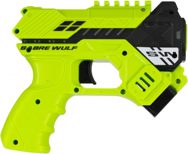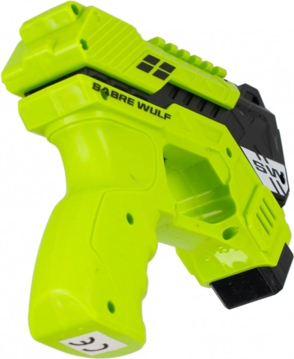 In de verpakking zitten 6 zachte foamdarts die veilig zijn en geschikt voor binnen en buiten. Het pistool is verkrijgbaar in twee aantrekkelijke kleuren – rood en groen – en valt op met de moderne “blaster”-look van SABRE WULF.