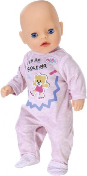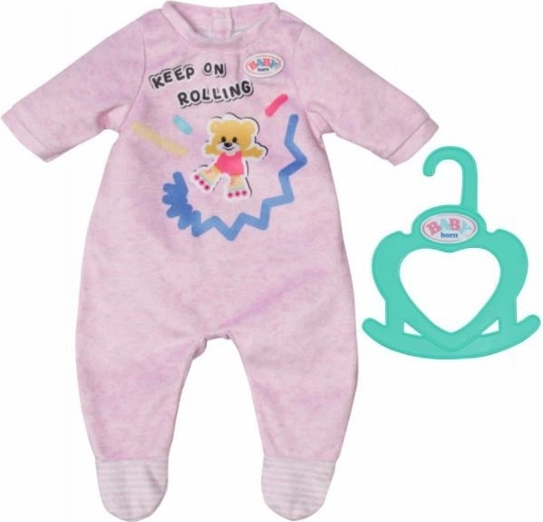 Comfortabele roze onesie voor BABY BORN Little poppen van 36 cm met geïntegreerde sokjes en een schattige beertjesprint. Ideaal voor dagelijks spelen en slapen – makkelijk aan en uit te trekken, wat zelfstandigheid en fijne motoriek stimuleert. Inclusief praktische hanger. Zijdezacht materiaal, eenvoudige snit en stijlvol design voor eindeloos speelplezier.