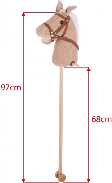 Het corduroy stokpaard is een ideale speelgoedkeuze voor kinderen die van bewegen houden. Dit paardje heeft een zachte corduroy kop, een fluffy manen en praktische teugels. Twee houten wielen aan het uiteinde van de stok zorgen voor soepele beweging op vlakke ondergrond zonder sporen achter te laten.