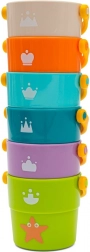 De bekers kunnen tot een piramide worden gestapeld of in elkaar worden geschoven. Het kleurrijke design met eenvoudige graphics maakt sorteren en het leren van kleuren makkelijker.