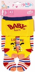 BABY born panty’s bieden comfort en stijl in één set, aangevuld met speelse patronen. Dankzij de motieven van konijntje Benno en hondje Bello zullen kinderen enthousiast zijn. De eerste duo-set in roze en blauw verrast met Benno die zwaait op roze panty’s met blauwe confetti en een konijntje op blauwe strepen. De tweede set bevat zonnig gele en bont gestreepte panty’s met een hondjesprint.