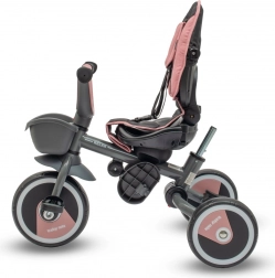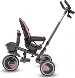 Deze driewieler combineert comfort, veiligheid en flexibiliteit. De draaibare en verschuifbare zitting met verstelbare rugleuning maakt rijden met of tegen de rijrichting in mogelijk, terwijl de vijfpuntsgordels en afneembare beugel maximale zekerheid bieden. De grote opklapbare kap met kijkvenster beschermt tegen de zon en laat je je kind altijd in het oog houden.