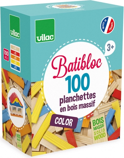 De houten bouwset VILAC Batibloc color 100 is een ideale keuze voor kleine bouwers. De gladde plankjes in vrolijke kleuren en in naturel zijn gemakkelijk te stapelen en maken het mogelijk om torens, huisjes en fantasierijke constructies te creëren. Dankzij de universele vorm leren kinderen geduld, balans en de basis van constructief denken.
