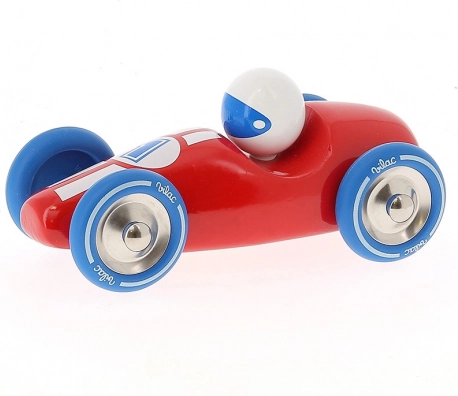 Ontdek een tijdloos speelgoed dat verbeelding en smaak ontwikkelt. De rode VILAC raceauto valt op door zijn minimalistische design, hoogwaardige afwerking en duurzame materialen. Dankzij de rubberen wielen rolt hij gemakkelijk en stil over de vloer en is hij veilig voor kinderen vanaf 2 jaar.