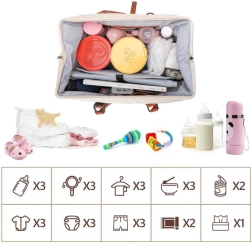 In de MOMMY BAG pak je luiers, kleding, flesjes, speelgoed en cosmetica in. De indeling binnenin helpt orde te houden en alles binnen handbereik te hebben.