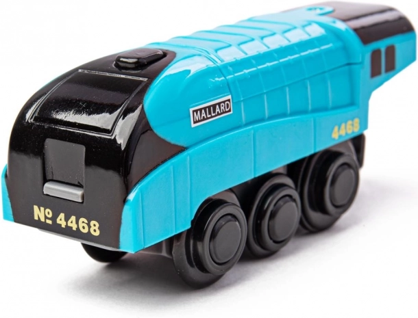 De elektrische locomotief Mallard valt niet alleen op door zijn opvallende blauwe design, maar ook door zijn vermogen om extra wagonnetjes te trekken dankzij het magnetische systeem. De eenvoudige bediening met één knop op de schoorsteen zal je verrassen door zijn gebruiksgemak. De locomotief werkt op 2 AAA-batterijen, die niet zijn inbegrepen.