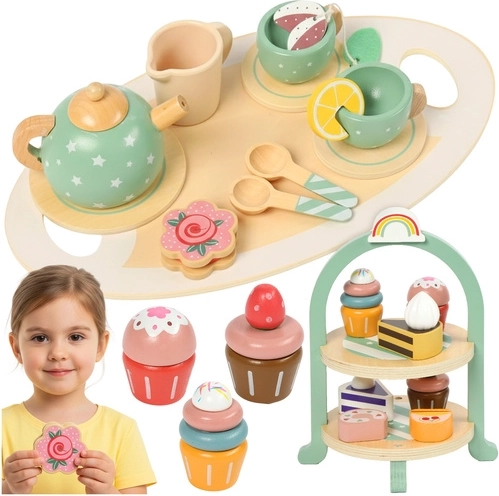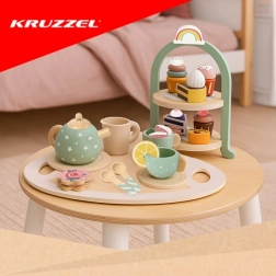 Creëer de eerste theeceremonie voor je kind – de Kruzzel-set combineert een realistische look van desserts met veilige materialen en een stevige constructie. De etagère, het dienblad met handgrepen en de gevarieerde selectie gebakjes nodigen uit tot rollenspellen die verbeelding en communicatie ontwikkelen. Dankzij kwalitatief hout en niet-giftige verven is het spel veilig en langdurig bestand tegen gebruik.