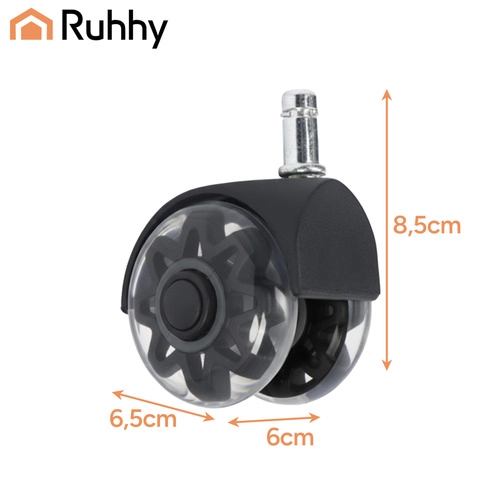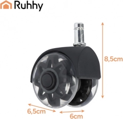 RUHHY wieltjes zorgen voor comfort en veiligheid voor zowel je vloer als je stoel. Dankzij het zachte PU-oppervlak rollen ze soepel over laminaat, parket, tegels en tapijt zonder krassen achter te laten. Een stalen lager en de versterkte constructie garanderen een lange levensduur en betrouwbaarheid bij dagelijks gebruik.