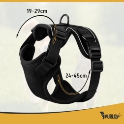 Het Purlov Guard-harnas voor kleine honden en katten is ontworpen voor maximaal comfort en veiligheid. De speciale drukvrije constructie verdeelt de druk weg van gevoelige zones, zodat je huisdier vrij en blij de omgeving kan verkennen. Dankzij de soepele verstelling pas je het harnas eenvoudig aan de actuele lichaamsvorm van het dier aan.