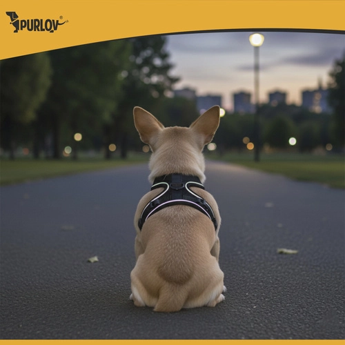 Purlov Guard-harnassen zijn de ideale keuze voor dagelijkse wandelingen. Dankzij de speciale constructie drukken ze niet op de nek of borst en kan je huisdier zich vrij en vrolijk bewegen. Reflecterende details vergroten de zichtbaarheid in de schemering en het donker, en de duurzame materialen kunnen ook levendigere avonturen aan.