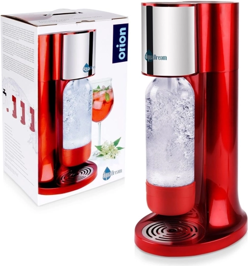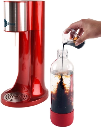 De AQUADREAM bruiswatermaker voor thuis in elegant rood laat je in een handomdraai vers bruisend water, limonades en zelfs licht mousserende wijn bereiden. Biedt regelbare bruisintensiteit, een veiligheidsventiel en het praktische FAST LOCK-systeem voor het snel bevestigen van de fles. Bespaart geld en milieu – met één CO₂-patroon tot 80 l drank en honderden plastic flessen minder.