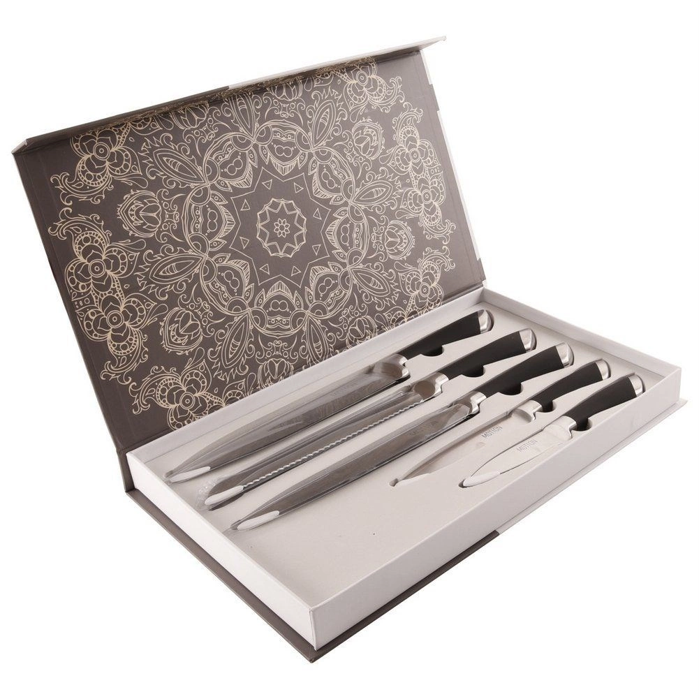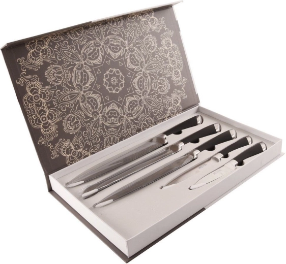 In de verpakking vind je vijf messen van verschillende lengtes voor nauwkeurig en efficiënt snijden van fruit, groenten, vlees en brood. Het tijdloze, klassieke design past in elke keuken en de set is ook een uitstekend cadeau. Origineel product van het Tsjechische merk ORION, vervaardigd volgens Europese standaarden.