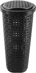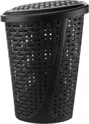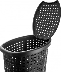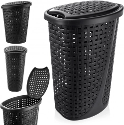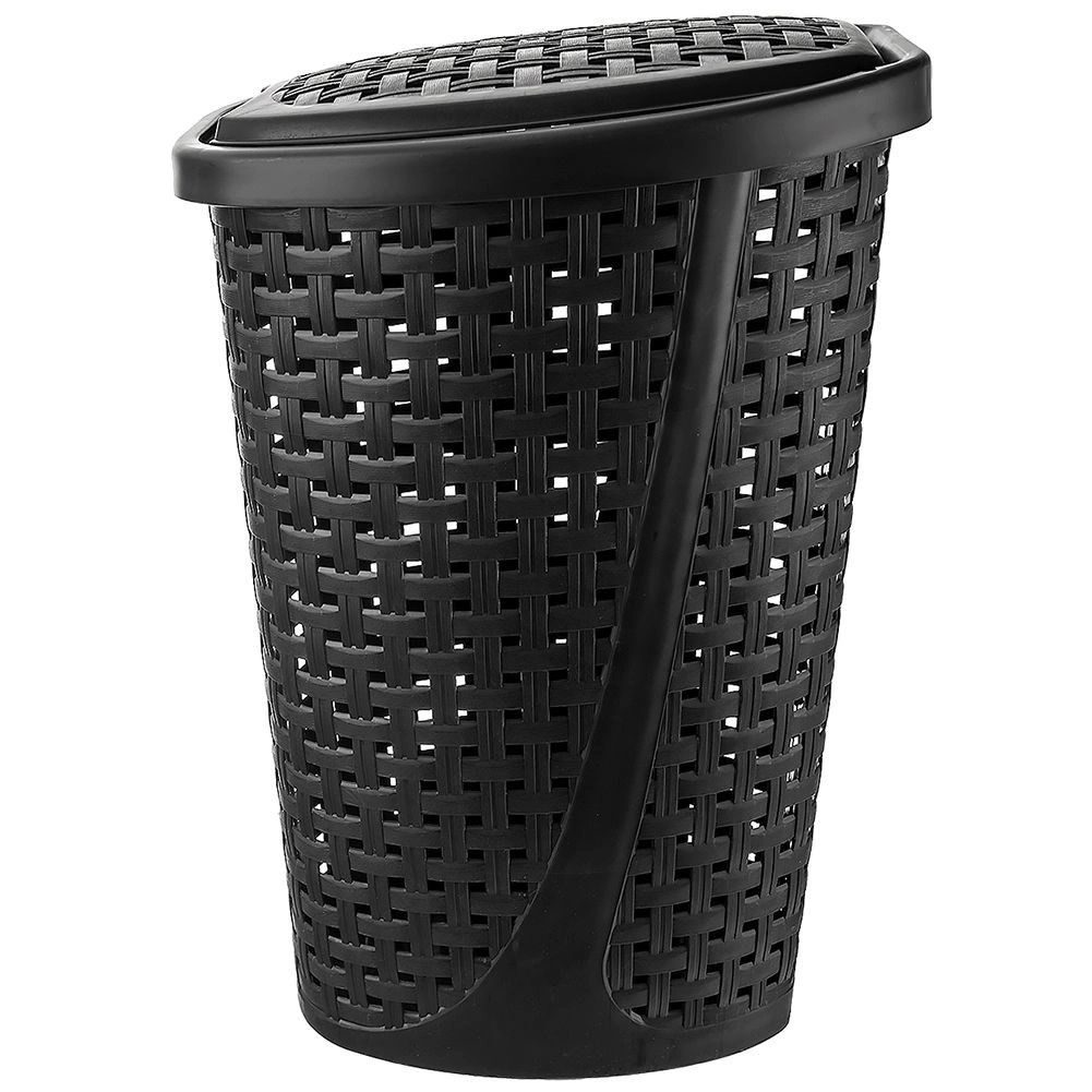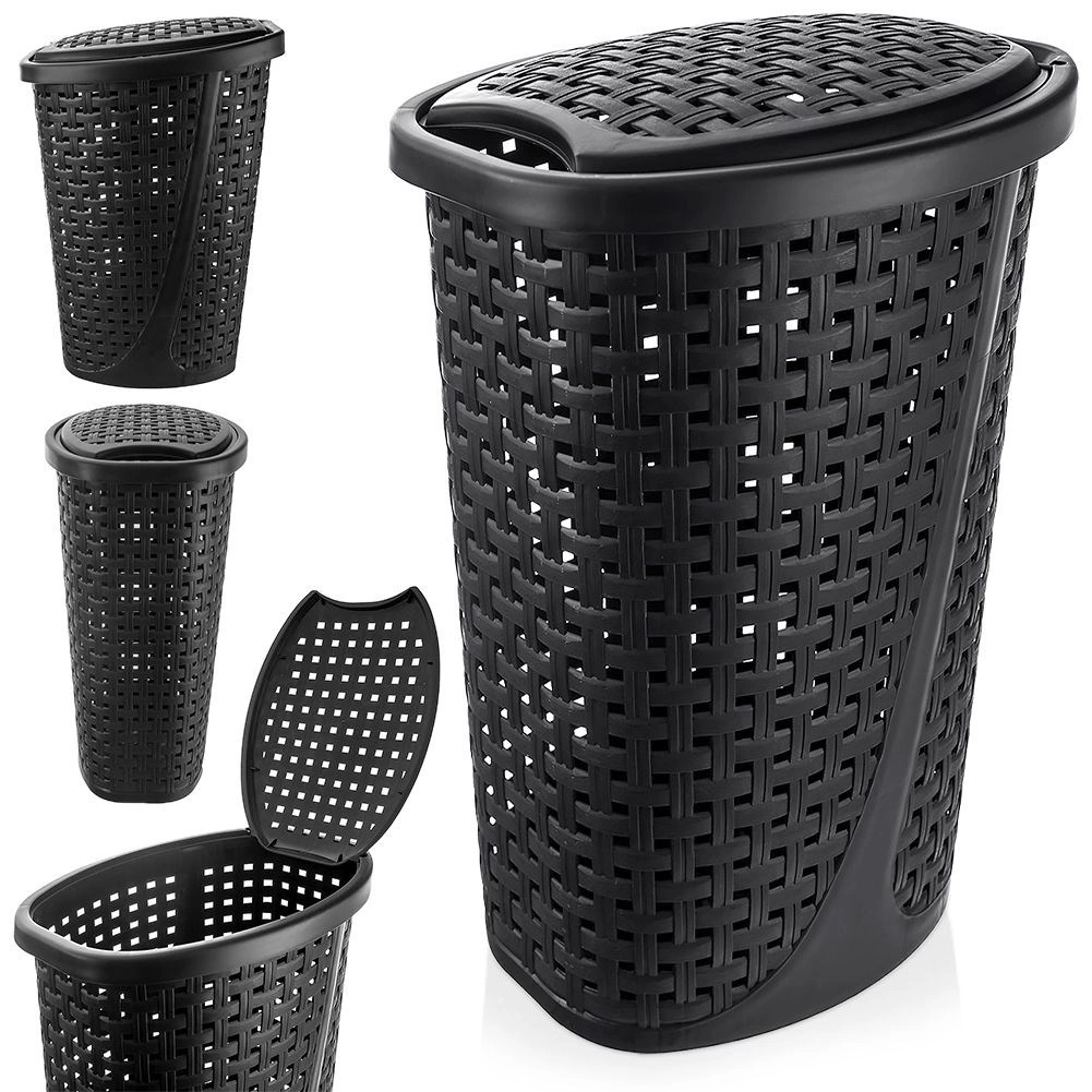 Houd orde in de badkamer met deze ruime, smalle wasmand die tot 45 liter vuile was kan bevatten. De moderne rattanstructuur met perforatie zorgt voor een uitstekende luchtcirculatie, zodat vocht en ongewenste geuren zich binnenin niet ophopen. De zwarte uitvoering laat zich gemakkelijk combineren met elke interieurstijl.