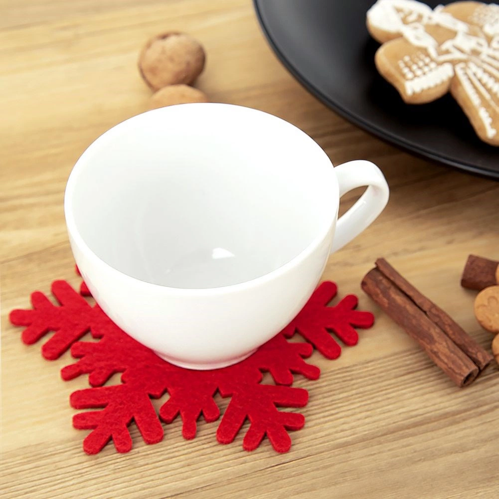 Rode onderzetters in de vorm van een sneeuwvlok creëren direct een feestelijke sfeer en vullen je tafeldekking aan tijdens de winter en met Kerst.