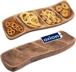 Ontdek stijlvol serveren met de handgemaakte serveerschaal van mangohout. Vier praktische vakken houden smaken gescheiden en accentueren de presentatie van elke lekkernij. De natuurlijke houttekening en subtiel afgeronde vormen geven je tafel een modern, maar tijdloos karakter.