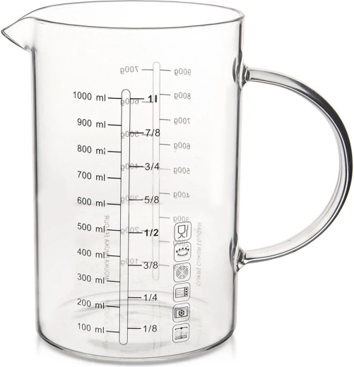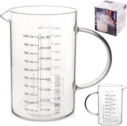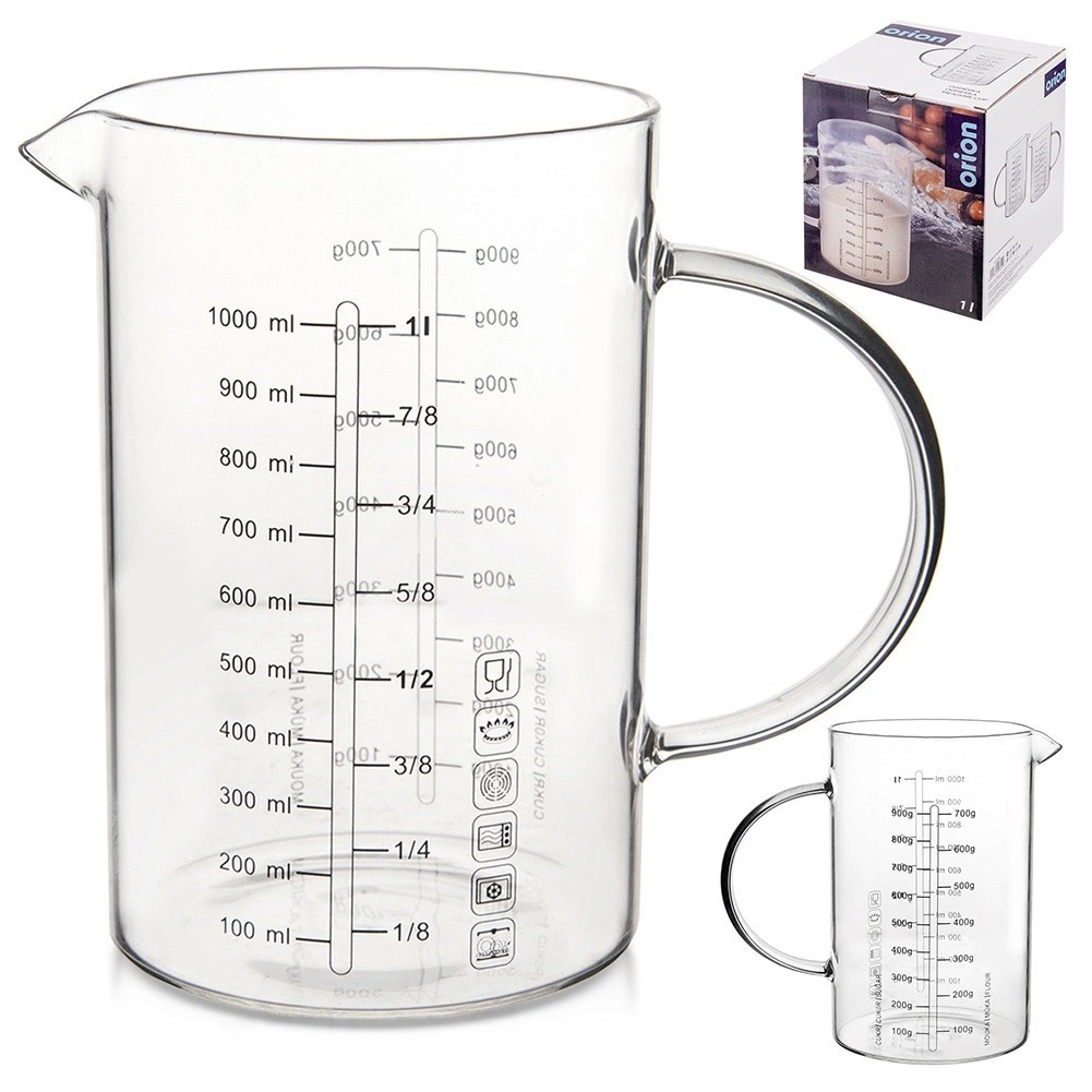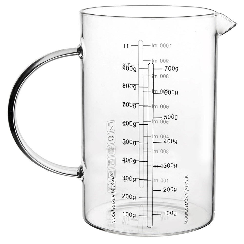 De glazen maatbeker in kannenvorm is een onmisbare hulp in elke keuken. Dankzij het ergonomische handvat en de praktische tuit zorgt hij voor precies en netjes schenken en strooien van ingrediënten. Gemaakt van duurzaam borosilicaatglas, kan hij een breed temperatuurbereik aan en is hij ideaal voor dagelijks koken en bakken.