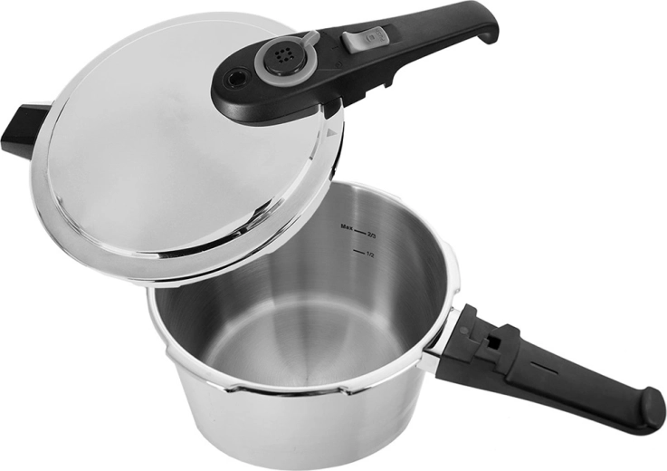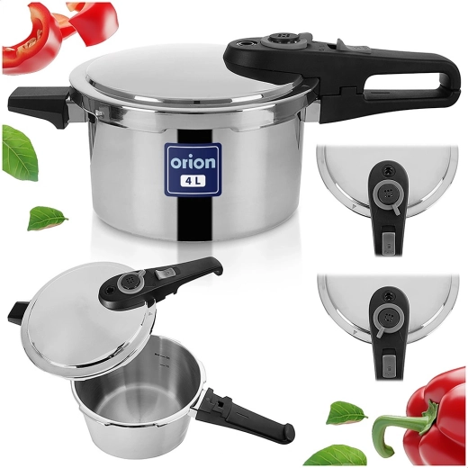 Praktische snelkookpan met een totale inhoud van 4 l, met comfortabel automatisch sluiten en drukregeling voor snel en energiezuinig koken. Gemaakt van hoogwaardig roestvrij staal met een sandwichbodem voor een gelijkmatige warmteverdeling. Biedt 2 kookprogramma’s, een veiligheidsventiel en een programma voor het vrijlaten van stoom. Geschikt voor alle soorten kookplaten, inclusief inductie, en vaatwasserbestendig (zonder deksel).