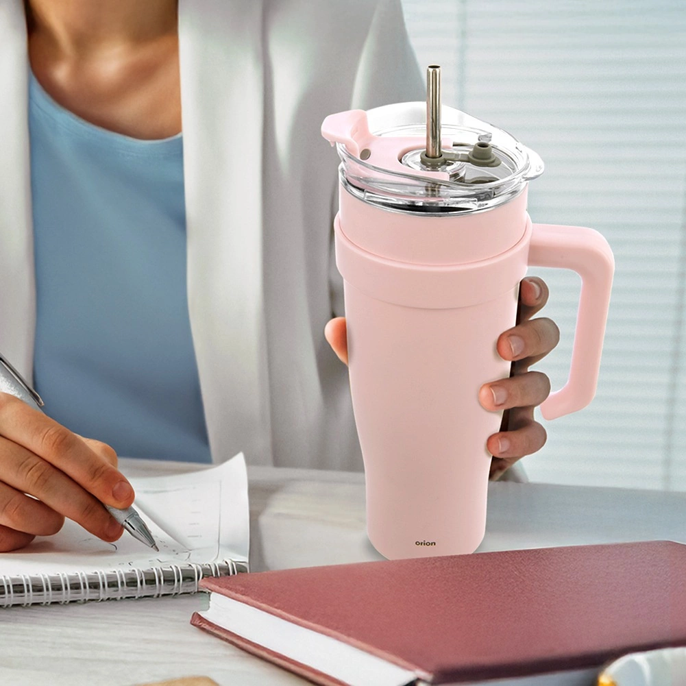 De praktische reisthermobeker met een inhoud van 1,2 l biedt drinkcomfort in elke situatie. Hoogwaardig roestvrij staal in een elegante roze kleur, een ergonomisch oor en een transparant deksel met vergrendeling en opening voor een metalen rietje zorgen voor veilig en comfortabel gebruik. De constructie met vacuümisolatie houdt de temperatuur van dranken betrouwbaar gedurende vele uren vast.