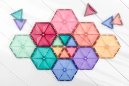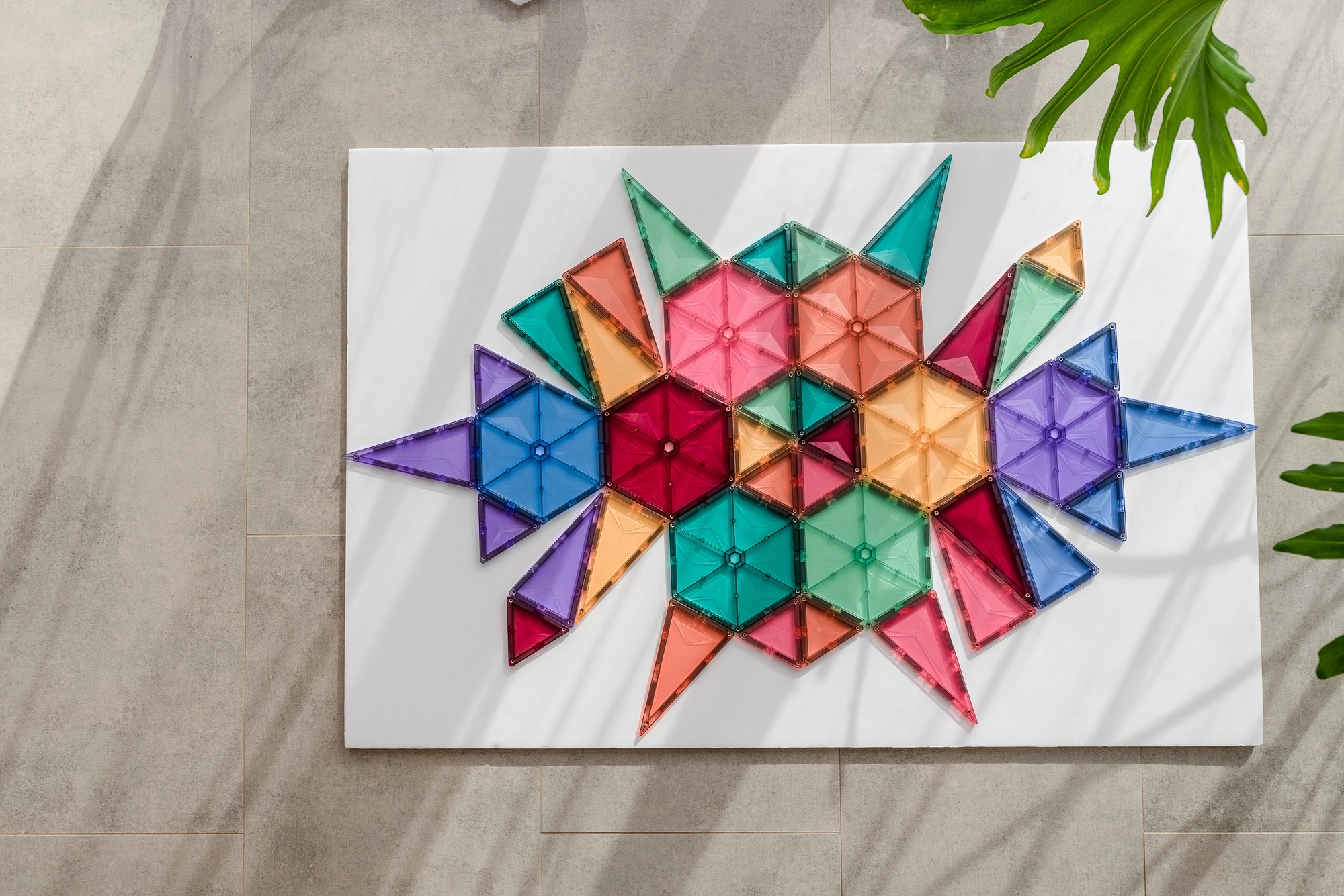 De pastel geometrieset van CONNETIX biedt transparante magnetische tegels die dankzij de krachtige ingebouwde magneten eenvoudig en stevig aan alle zijden verbinden. Kinderen kunnen 2D-patronen en 3D-bouwwerken maken – van sterren en mozaïeken tot bruggen, torens en raketten – en ondertussen spelenderwijs logisch denken, creativiteit en motoriek ontwikkelen.